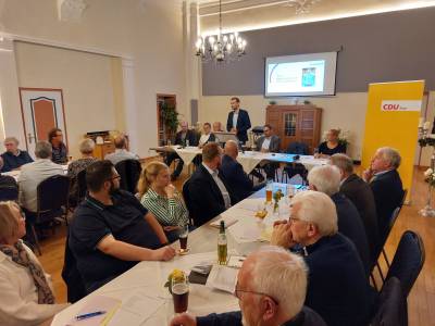 Als Gast durfte das Europaparlamentsmitglied Dr. Peter Liese begrüßt werden, der eindrucksvoll anhand der sieben Themen Wohlstandssicherung und -ausbau, Klimaschutz, Attraktivitätssteigerung des südwestfälischen Raums, Gesundheit, Respektsteigerung für Landwirte, Waldbesitzer und Menschen im ländlichen Raum, innere und äußere Sicherheit sowie Humanität und Ordnung bei der Zuwanderung die europäische Politik darstellte, aber auch auf die Handlungsnotwendigkeiten in Bezug auf die im nächsten Jahr stattfindende Europawahl verwies.